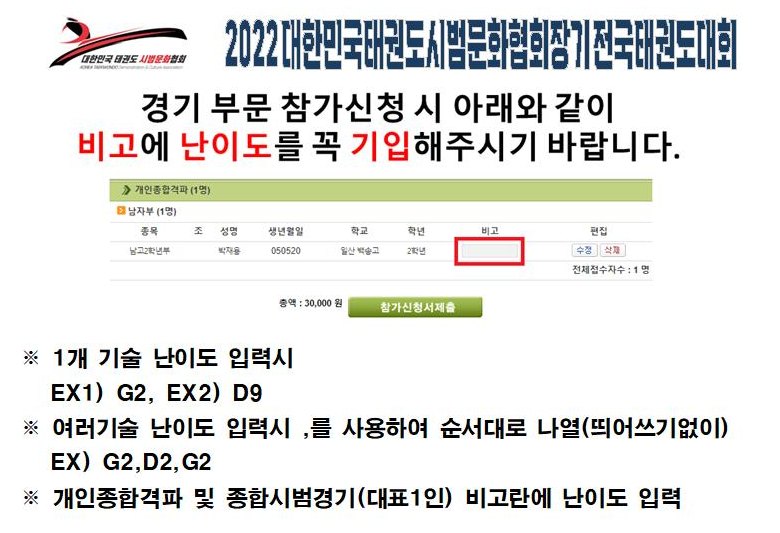 [대회알림] 2022년도 대한민국태권도 시범문화협회장기 전국태권도대회